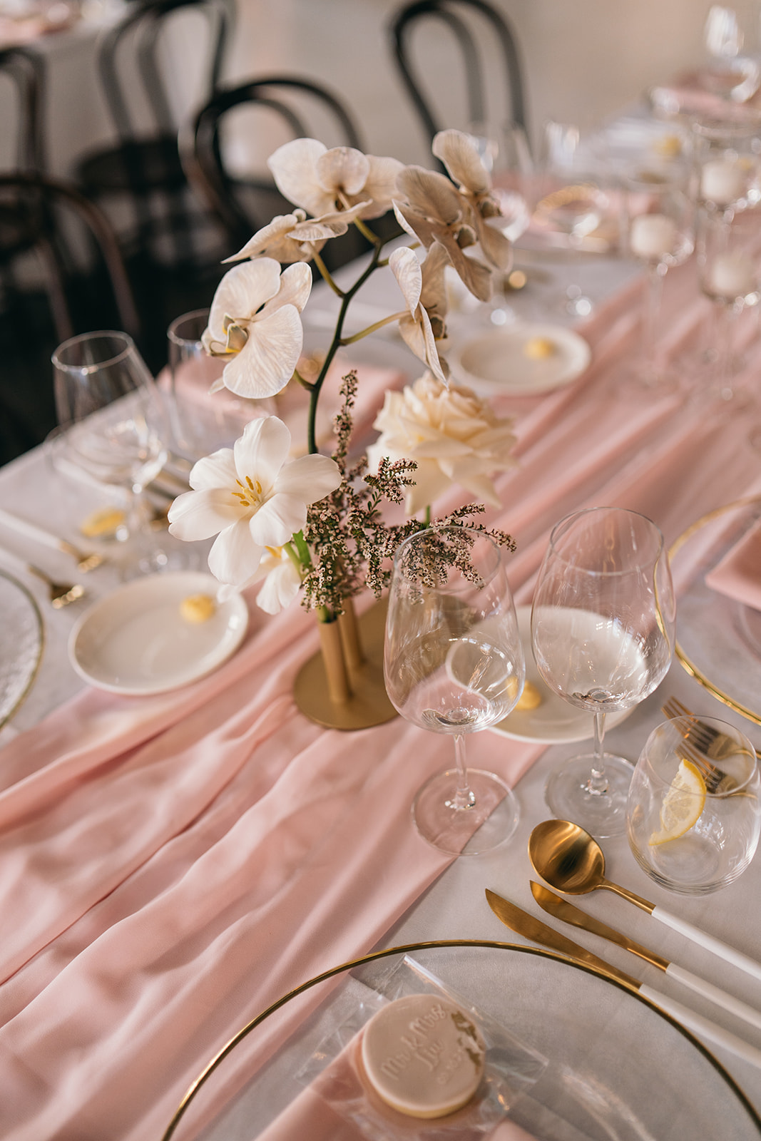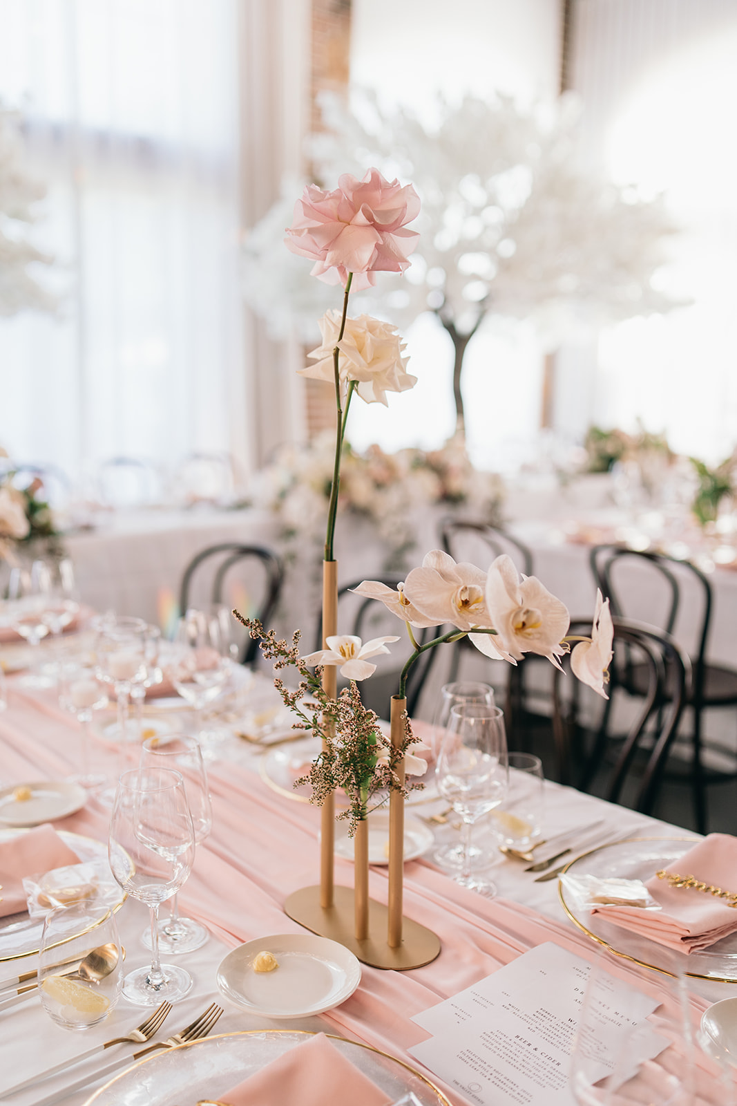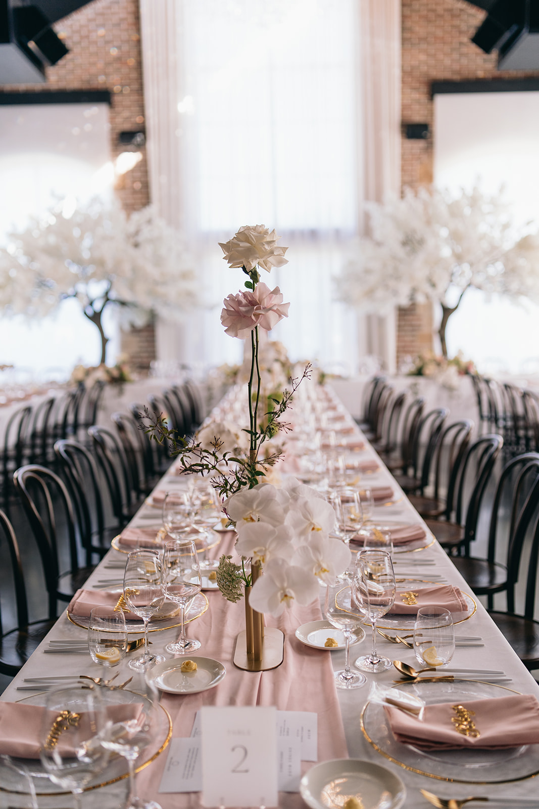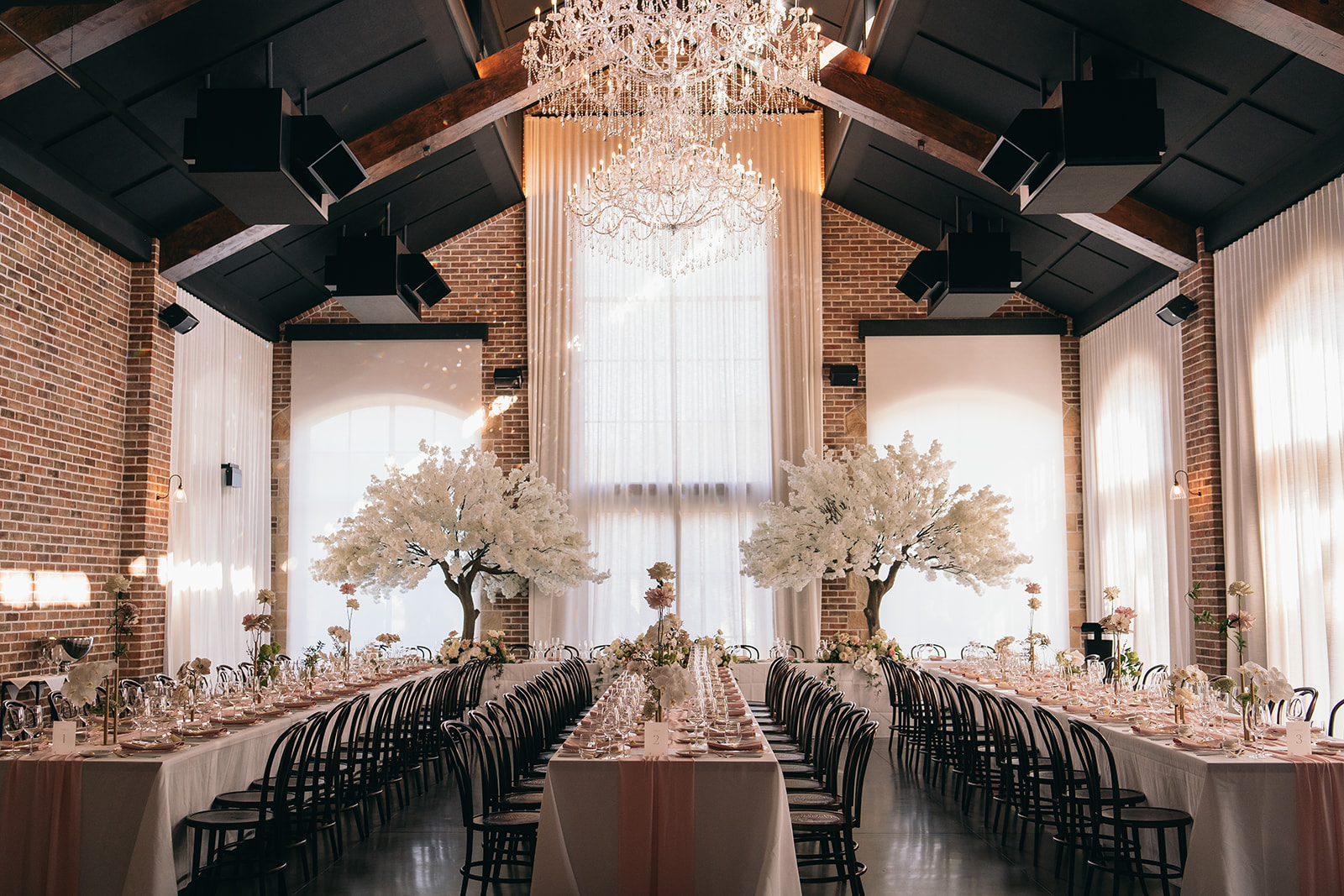 This luxury Gold Coast wedding at The Valley Estate featured a romantic blush and white colour palette, styled with premium faux cherry blossom trees, reflexed roses, and soft pink table runners. Our team delivered full wedding styling & design, and elegant hire pieces to create a dreamy and timeless celebration.