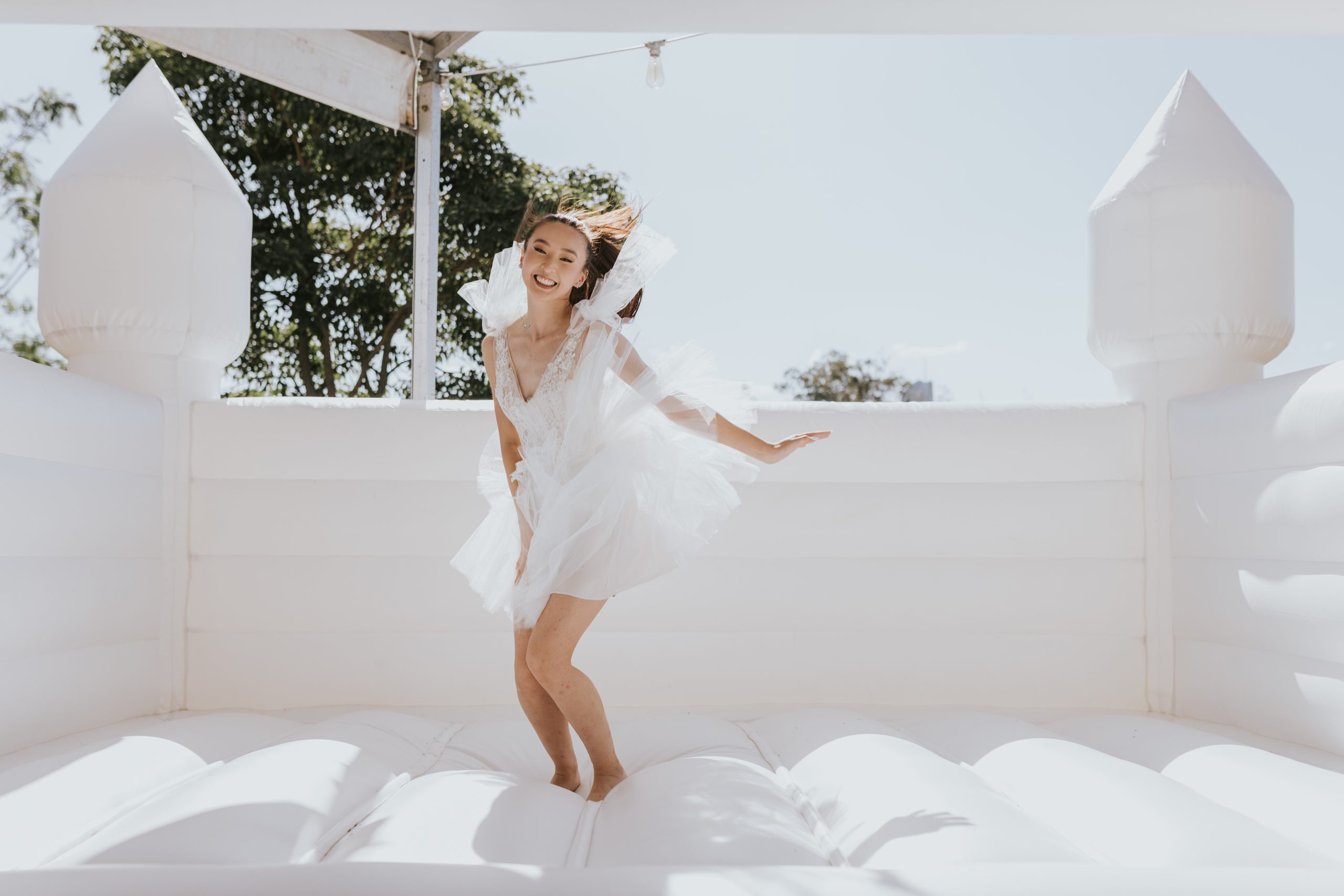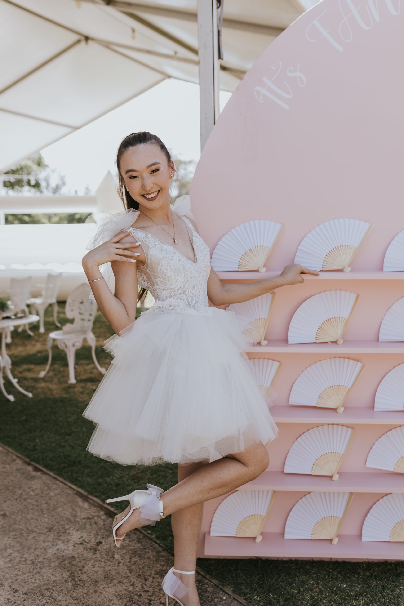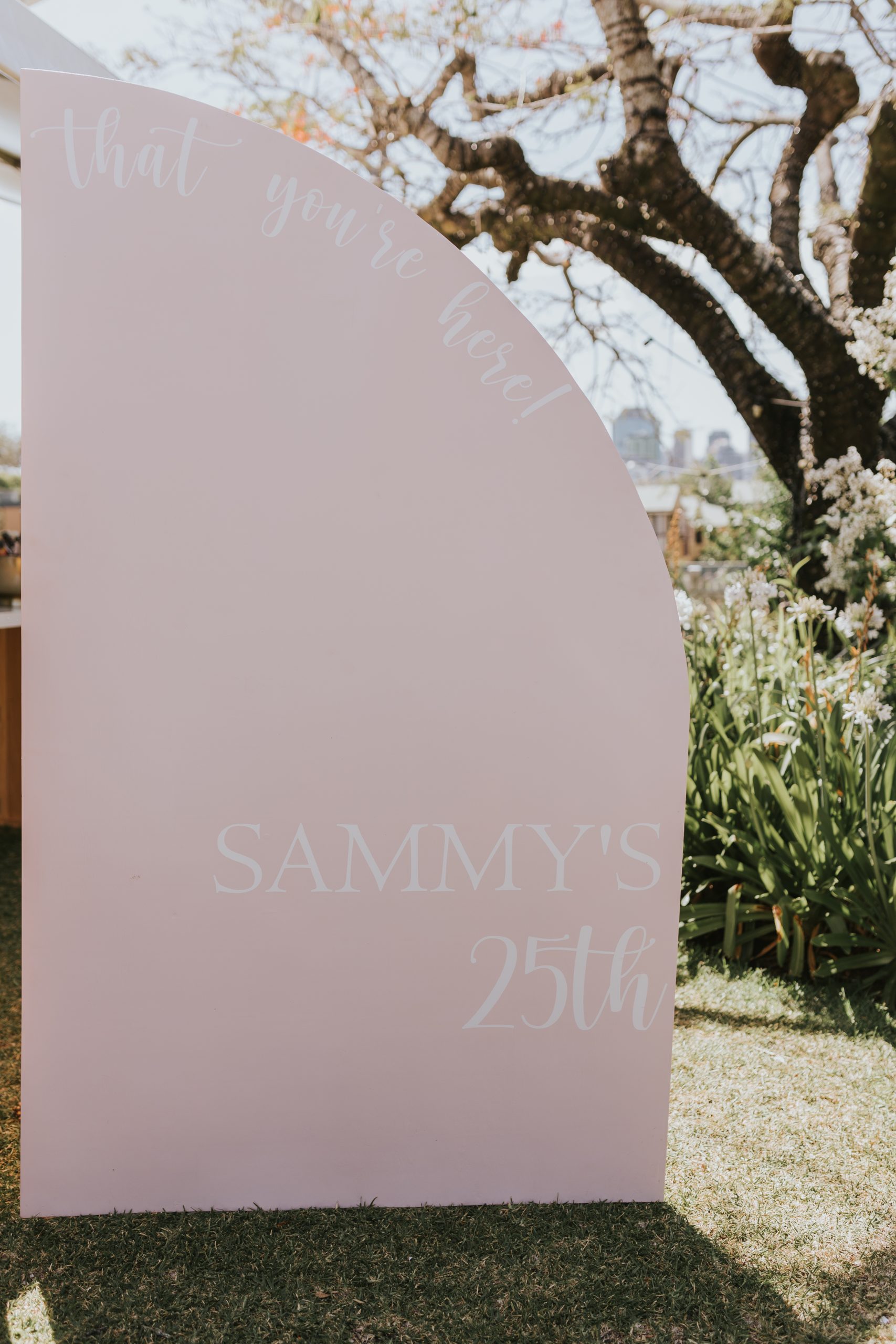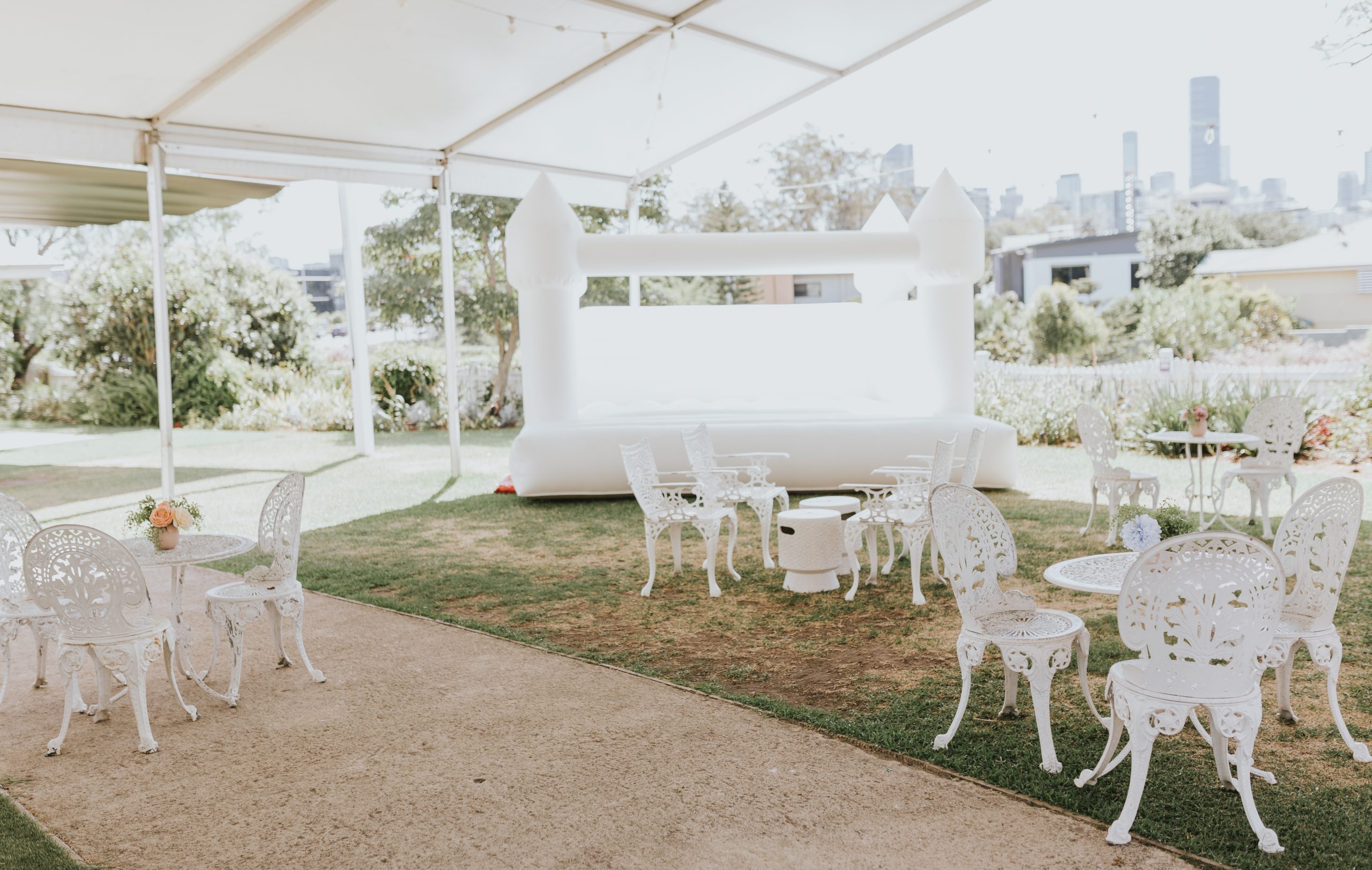 We created an intimate garden themed soiree for Sammy's 25th with fun activities including a garden swing, a fairy floss machine, and a white jumping castle. It was as entertaining and exciting as it sounds with the birthday girl dressed like a garden fairy to match the theme!