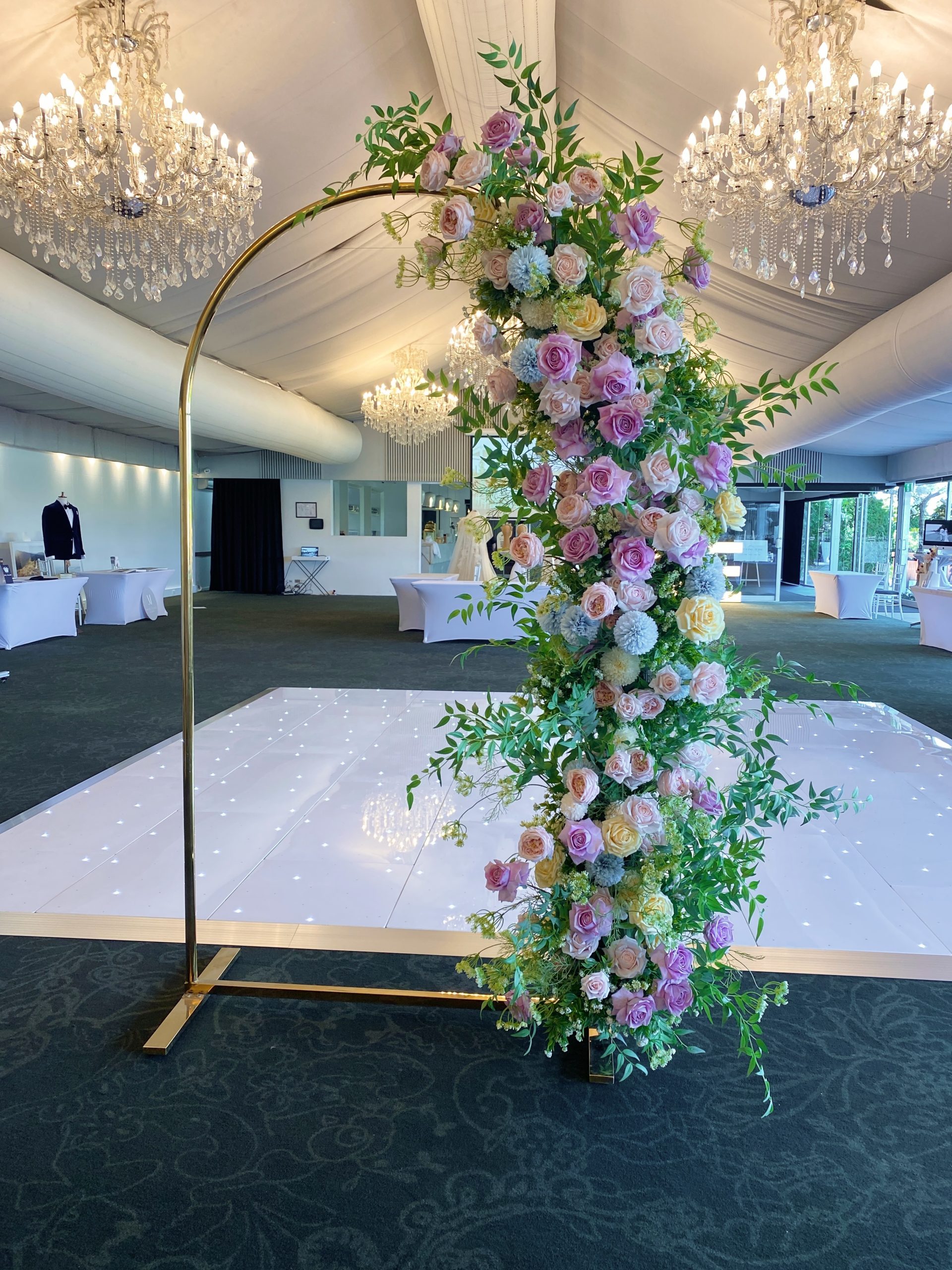 Gold arch frame with sturdy base legs.