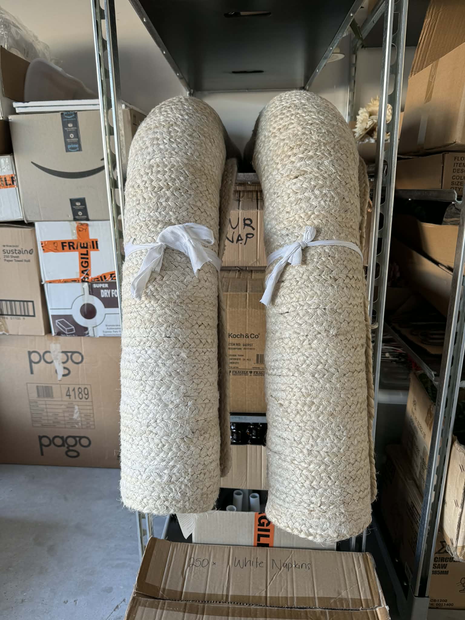 Extra large white hand braided jute rug. 2 available (must take all).